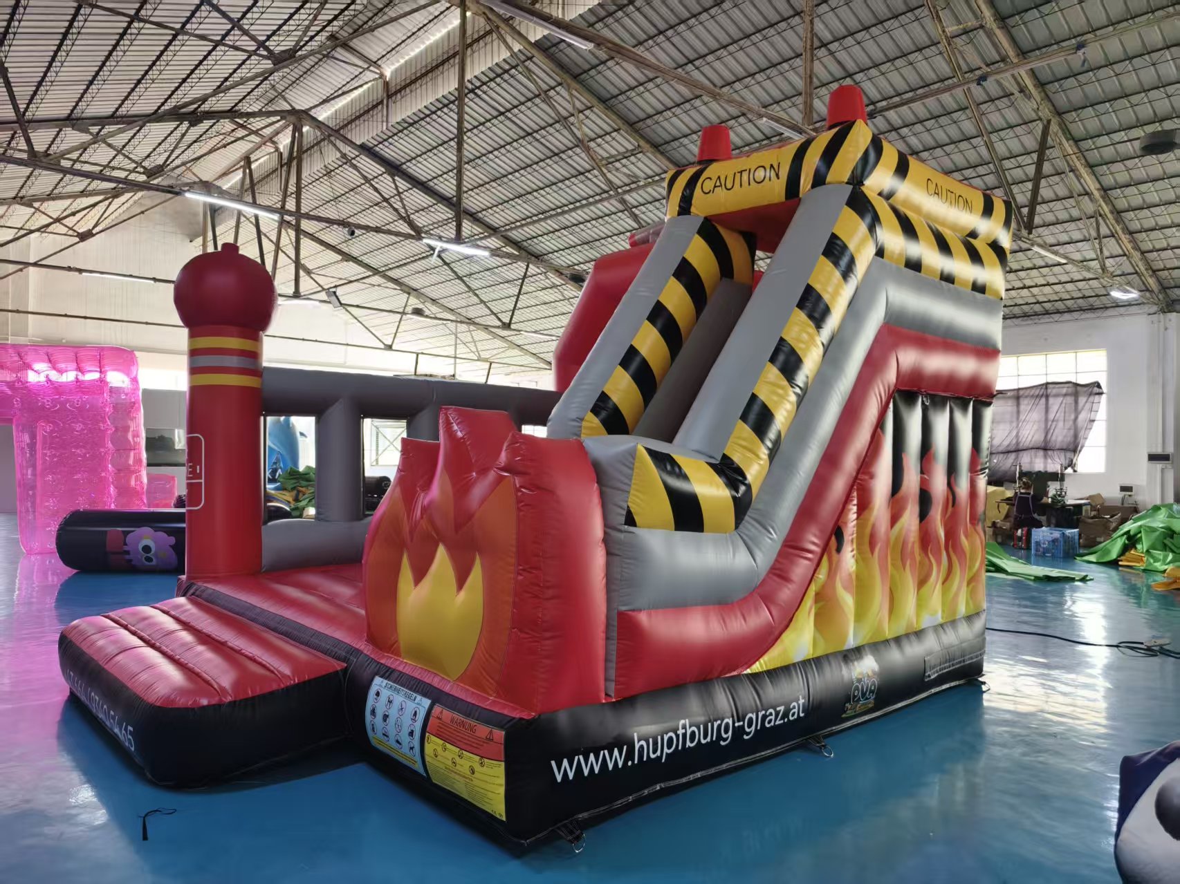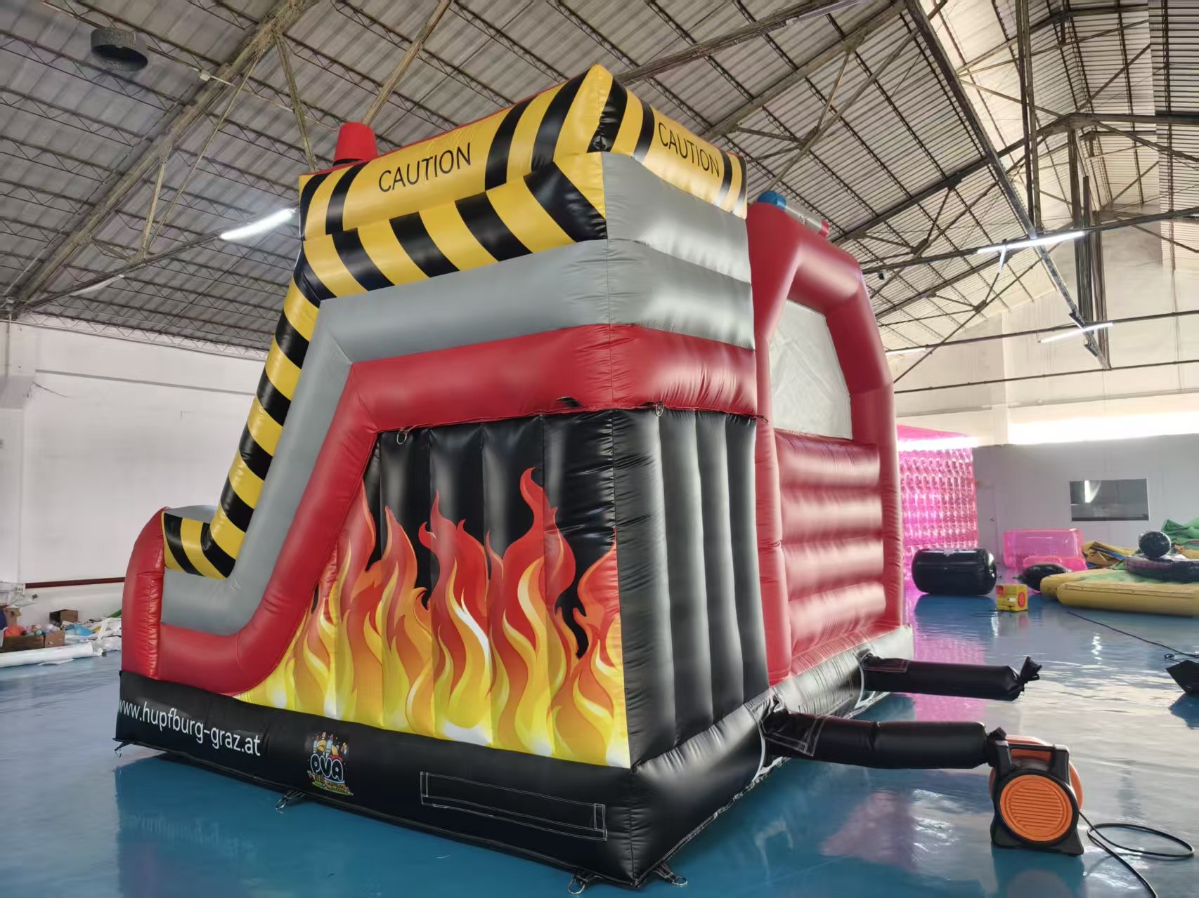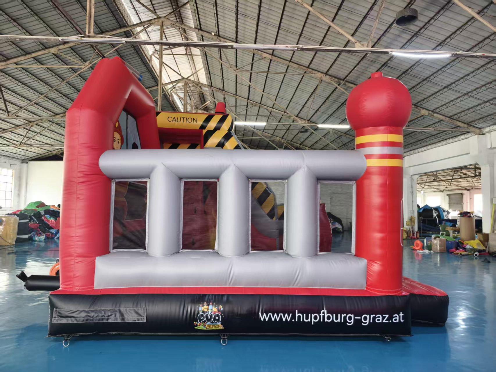 • Feuerwehr-Hüpfburg mit großem Rutschenturm