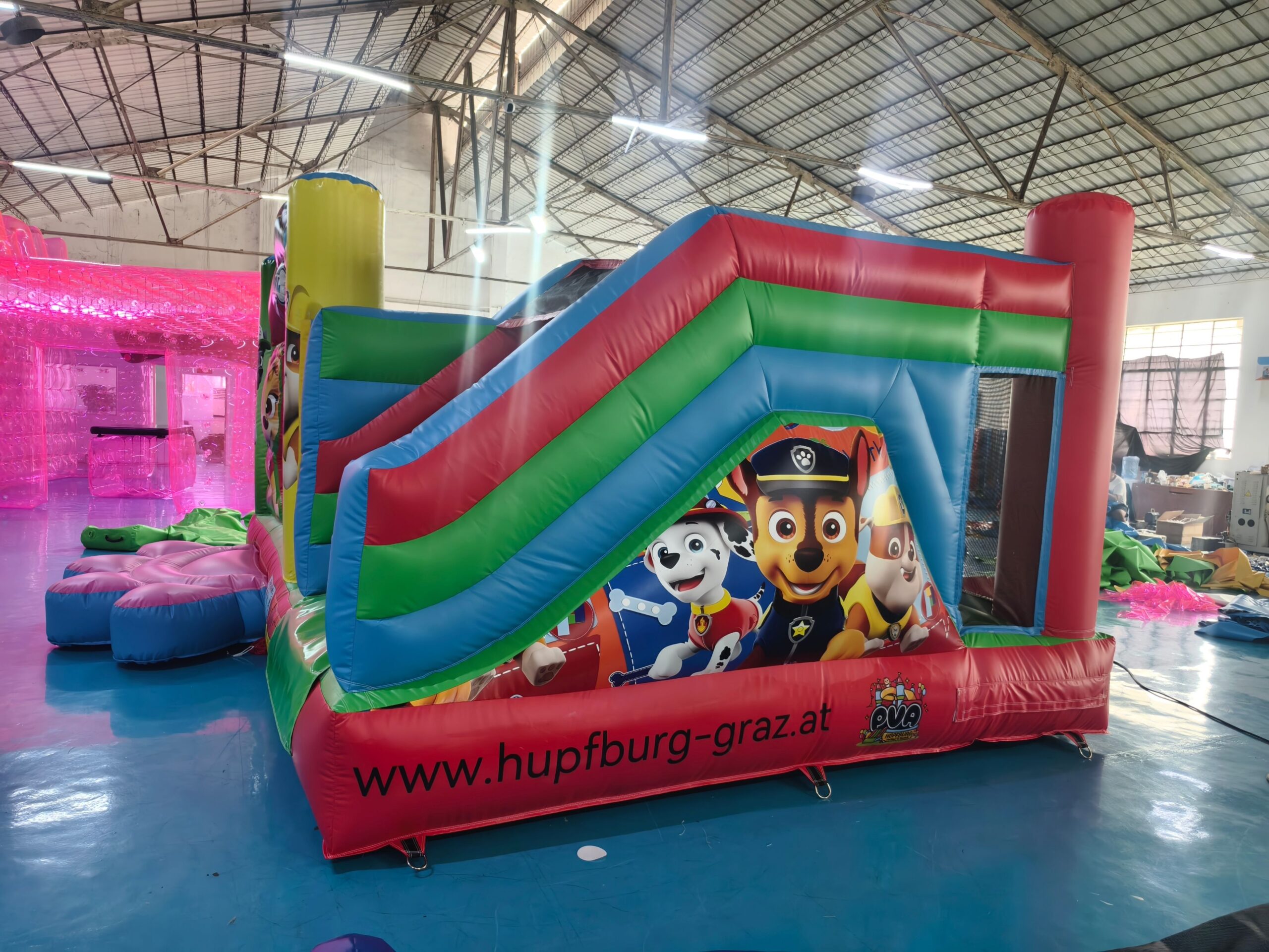 Bereit für eine Mission mit Chase, Skye, Marshall & Co.? Die Paw Patrol Fun Arena ist mehr als nur eine Hüpfburg – sie ist ein actionreiches Erlebnis für Kindergeburtstage, Events und Feste in der ganzen Steiermark. Mit ihrer liebevollen Gestaltung, mehreren Spielbereichen und einer großen Rutsche garantiert sie Spielspaß für viele Kinder gleichzeitig.